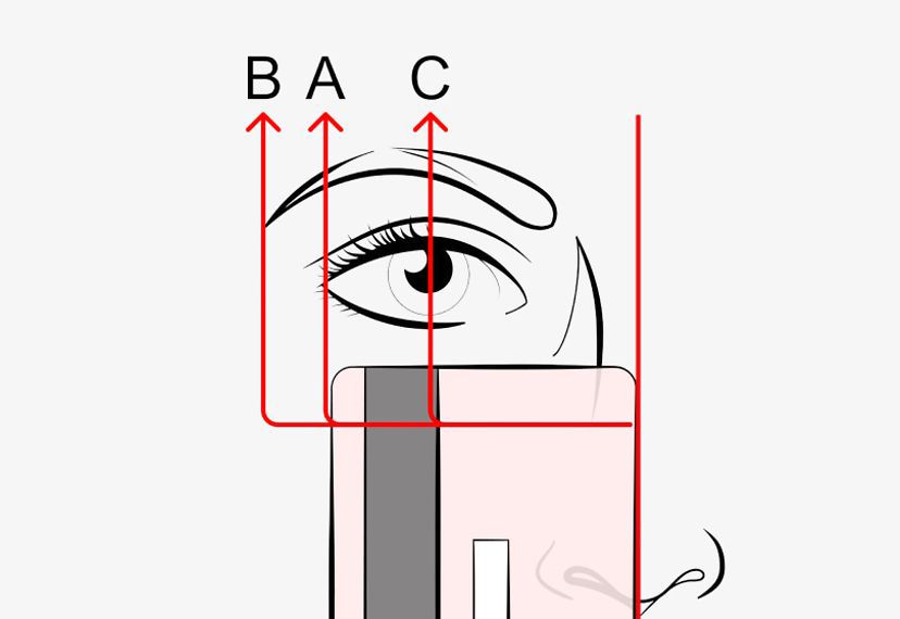 a. Si termina en el borde de tu ojo: tu talle es Mediano.