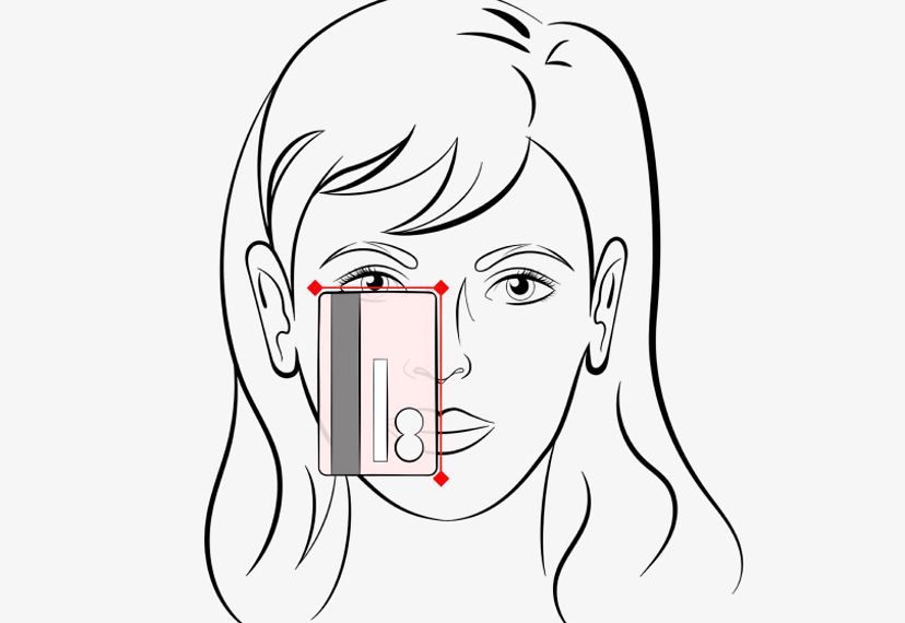 - Con la tarjeta en orientacion horizontla, coloca uno de los bordes en el centro de la nariz.